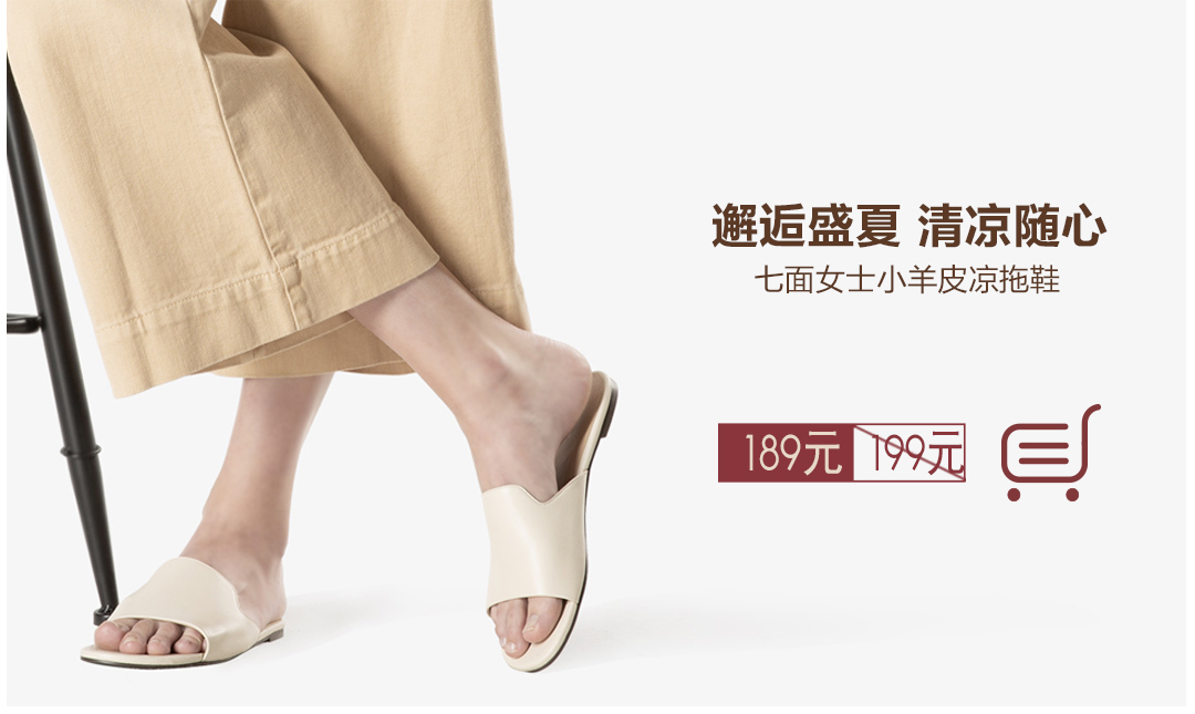 松紧带方头平底拖鞋