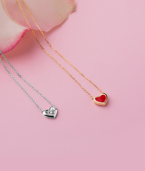 钻石珐琅心形18K金项链