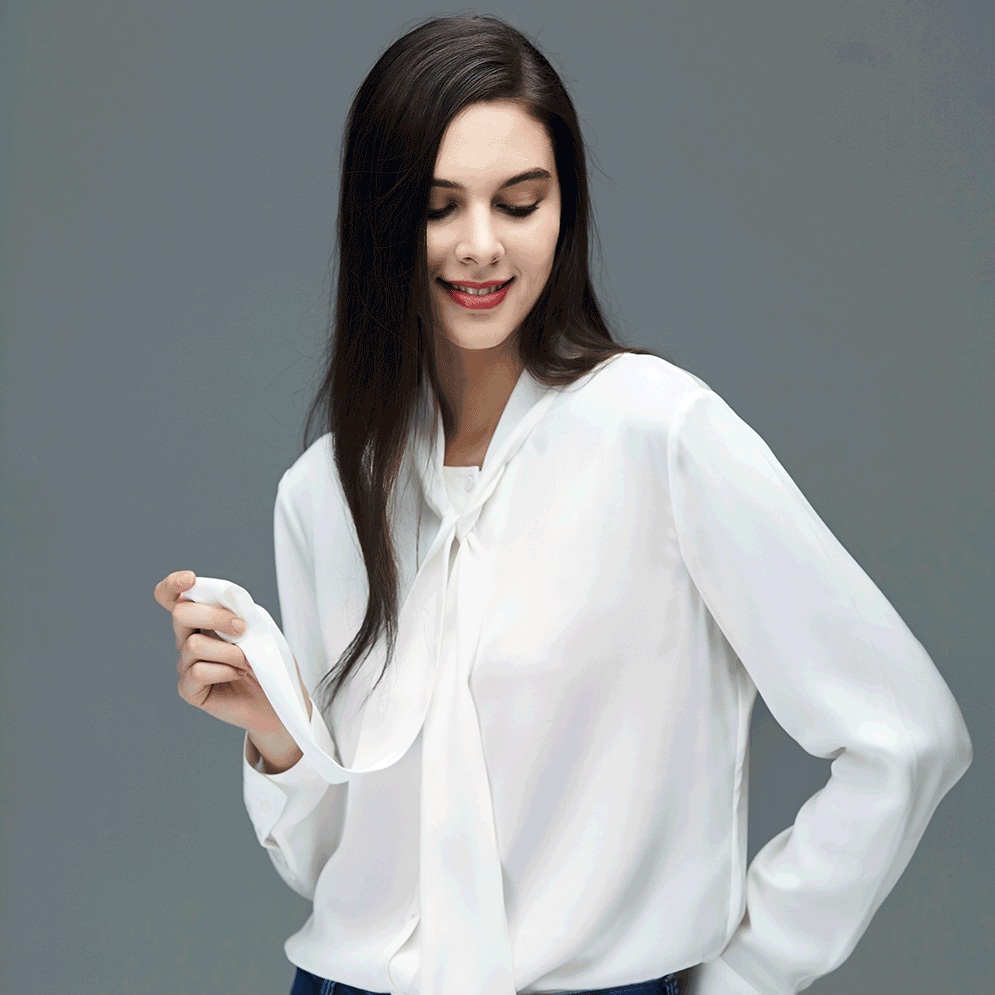 100%真丝蝴蝶结长袖衬衫